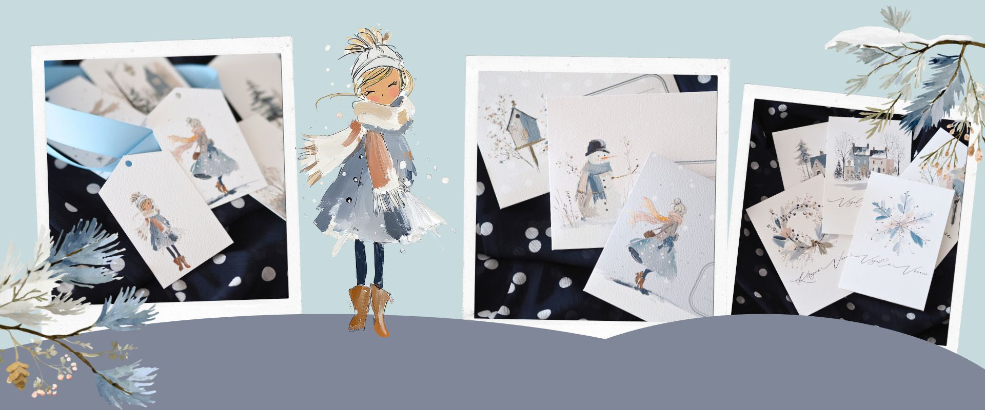 V zimní mlze – velká sada vánočních přání, obálek a visaček k tisku